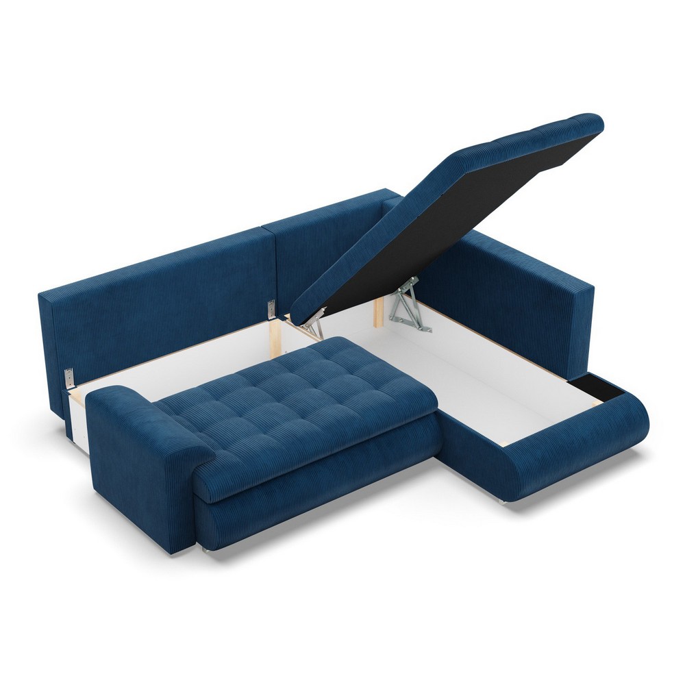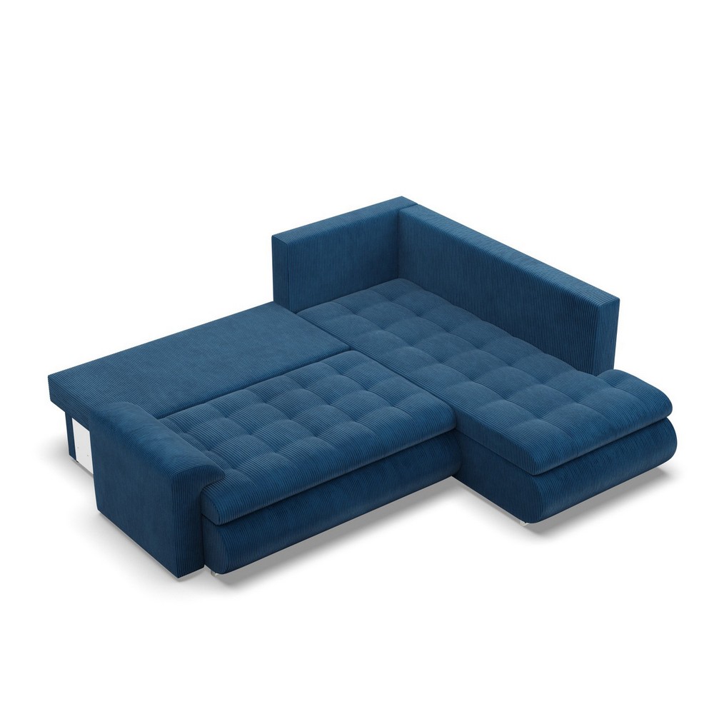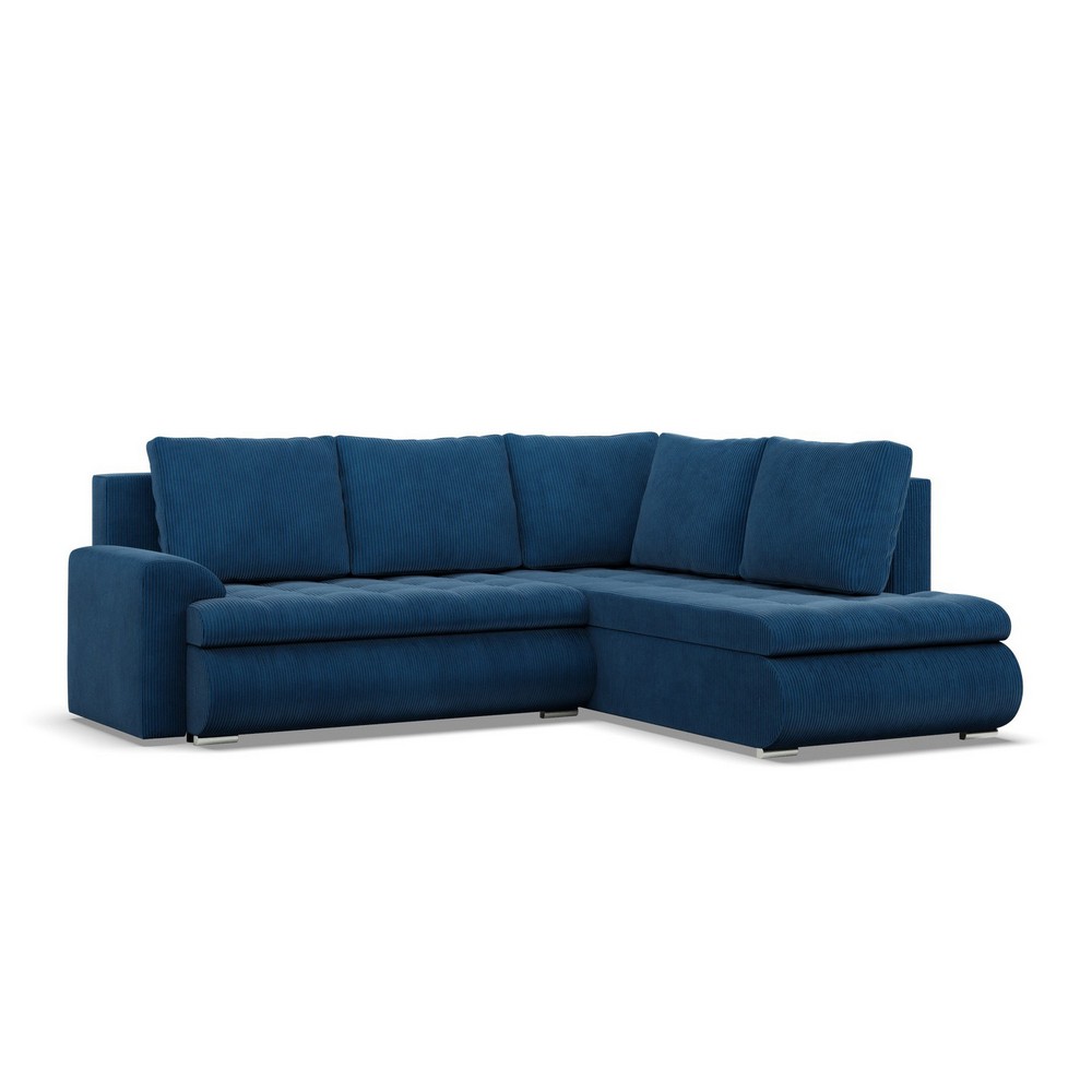 Narożnik z otomaną, prawy, BOSCO, sztruks, 230x200x89 cm, granatowy