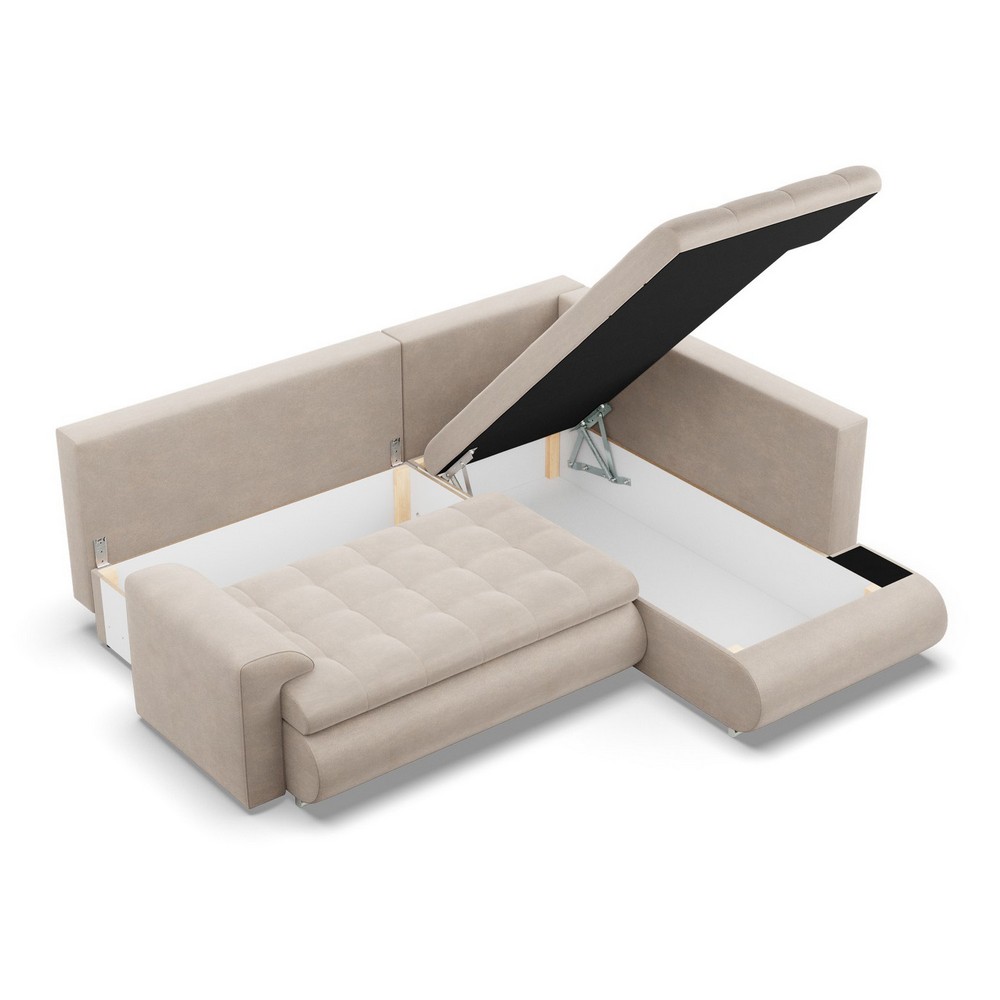 Narożnik z otomaną, prawy, BOSCO, velvet, 230x200x89 cm, beżowy
