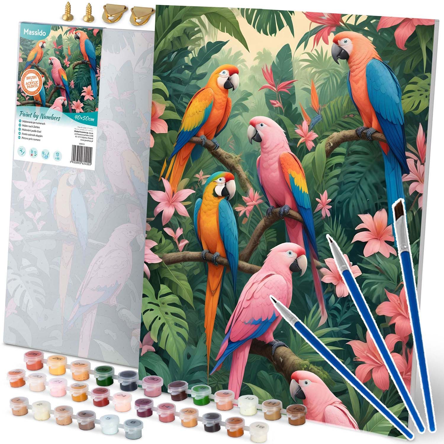 Obraz do malowania po numerach, 40x50 cm, Massido, Papugi