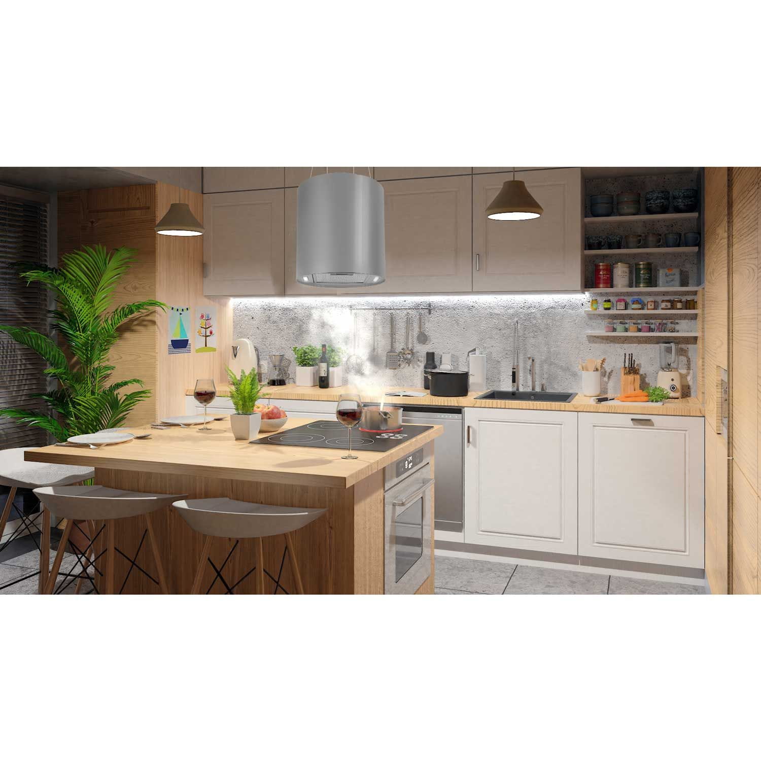 Okap kuchenny, wyspowy, wiszący, 35 cm, inox, BT-226, srebrny. Prezentowany okap wyspowy to idealne rozwiązanie dla osób szukających wydajnego urządzenia, które również nada kuchni stylu i szyku. Wykonanie z nierdzewnej stali gwarantuje wieloletnie użytkowanie: jest odporna na odbarwienia, plamy czy wysoką temperaturę. Kolejną zaletą są praktyczne funkcje: 3 tryby wydajności oraz podwójne działanie – jako pochłaniacz albo wyciąg. Atrakcyjny wizualnie design to nowoczesny element upiększający wnętrze idealnie wkomponują się do Twojej kuchni.
