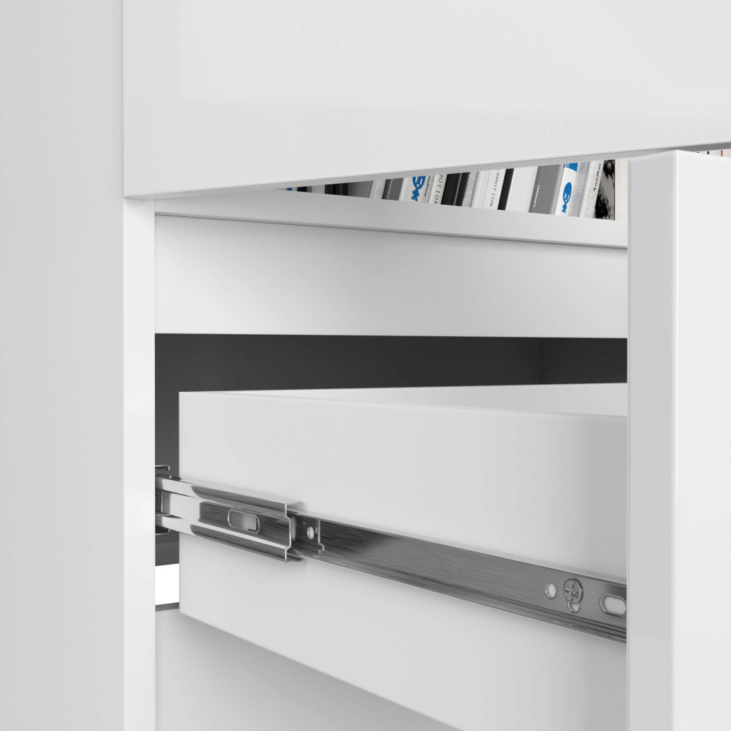 - Szuflada - na prowadnicach rolkowych to gwarancja wygodnego, a przede wszystkim bezpiecznego użytkowania, oraz blokadą wysuwu