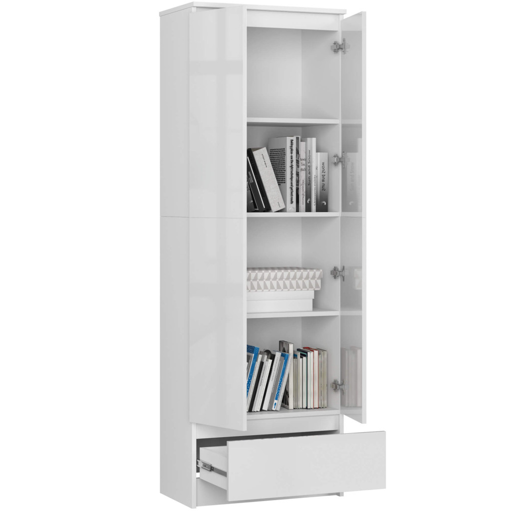 Regał biurowy, szafa, zamykany, GRAND, 60x35x180 cm, biały, połysk