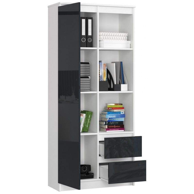 Regał biurowy, zamykany, 2 szuflady, ORDO PLUS, 80x35x180 cm, biały, grafit, połysk