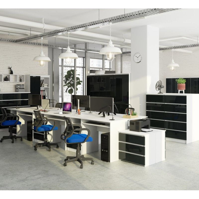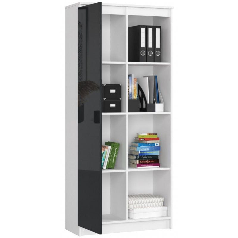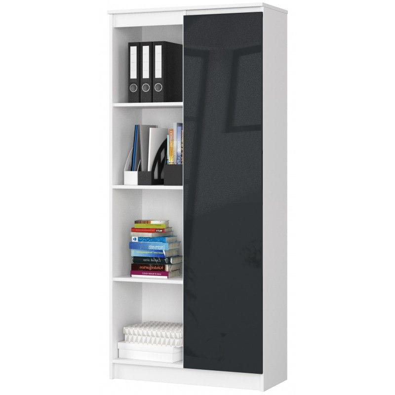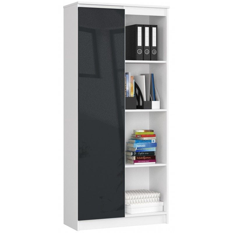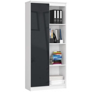 Regał biurowy, zamykany, półki, ORDO, 80x35x180 cm, biały, grafit, połysk