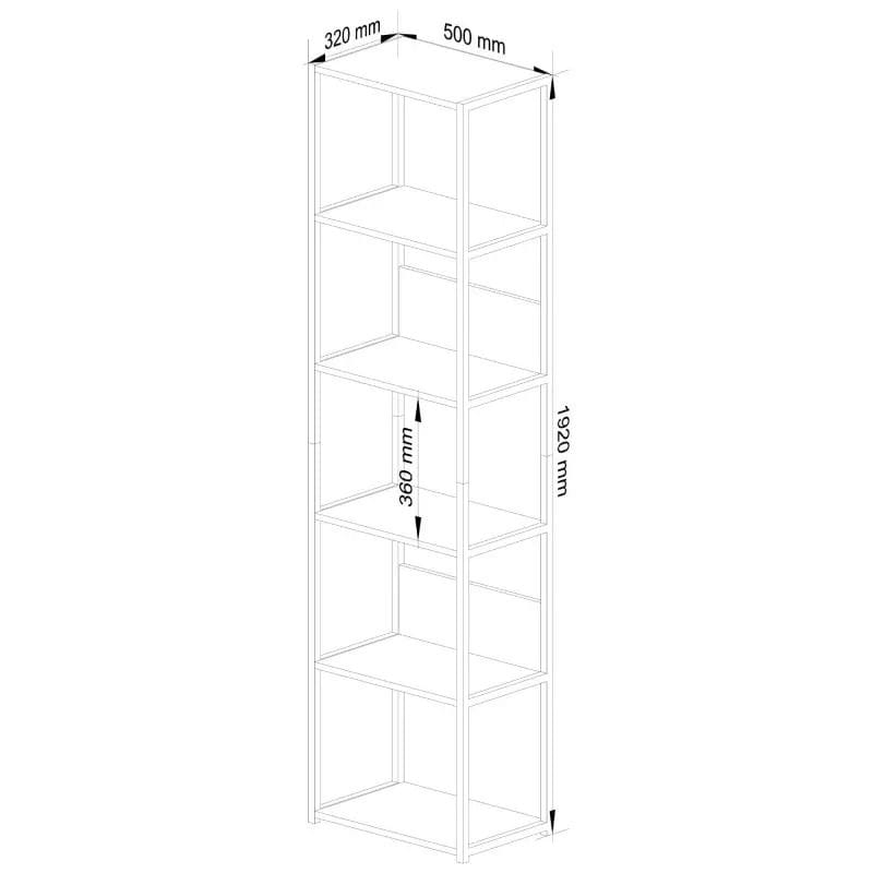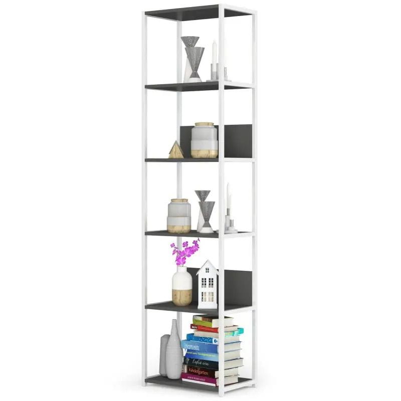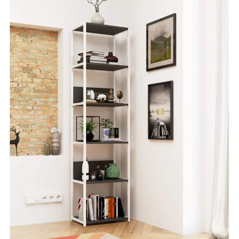 Regał do pokoju, loft, 6 półek, RAVEN, 50x32x192 cm, biały, szary, mat