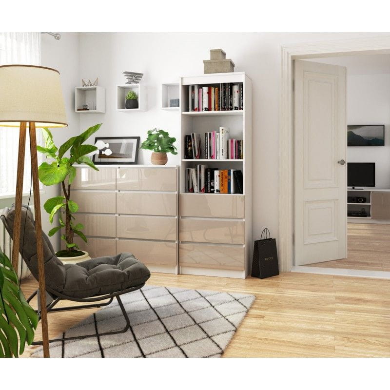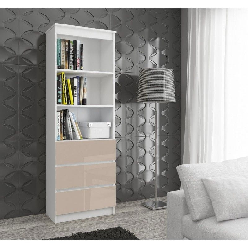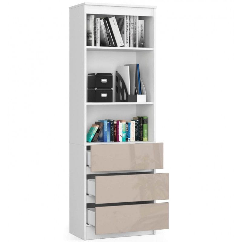 Regał do salonu, 3 szuflady, półki, ARLO, 60x35x180 cm, biały, cappuccino, połysk