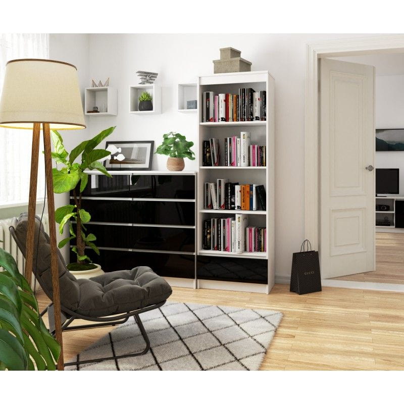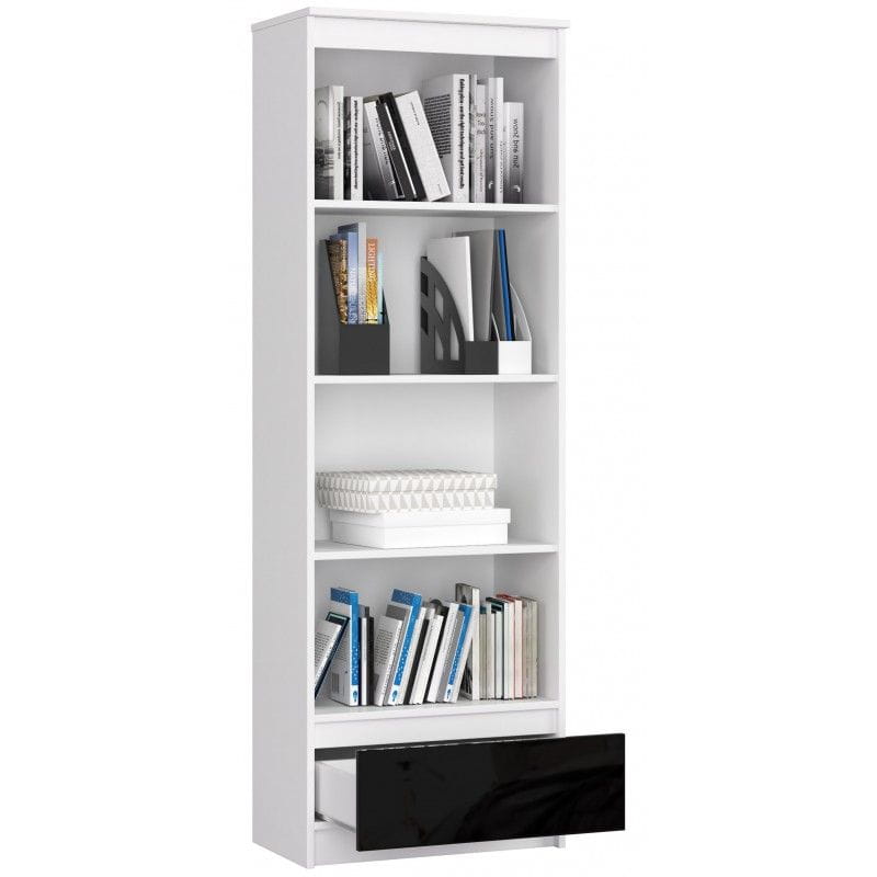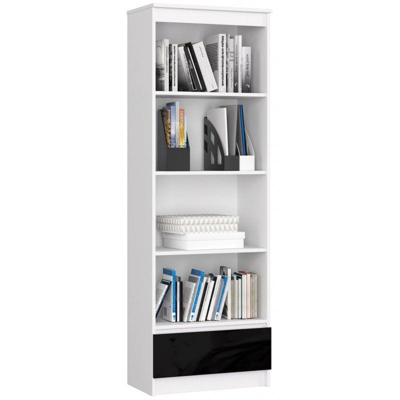 Regał do salonu, biura, 1 szuflada, półki, ARLO, 60x35x180 cm, biały, czarny, połysk