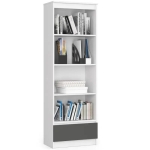 Regał do salonu, biura, 1 szuflada, półki, ARLO, 60x35x180 cm, biały, grafit, mat