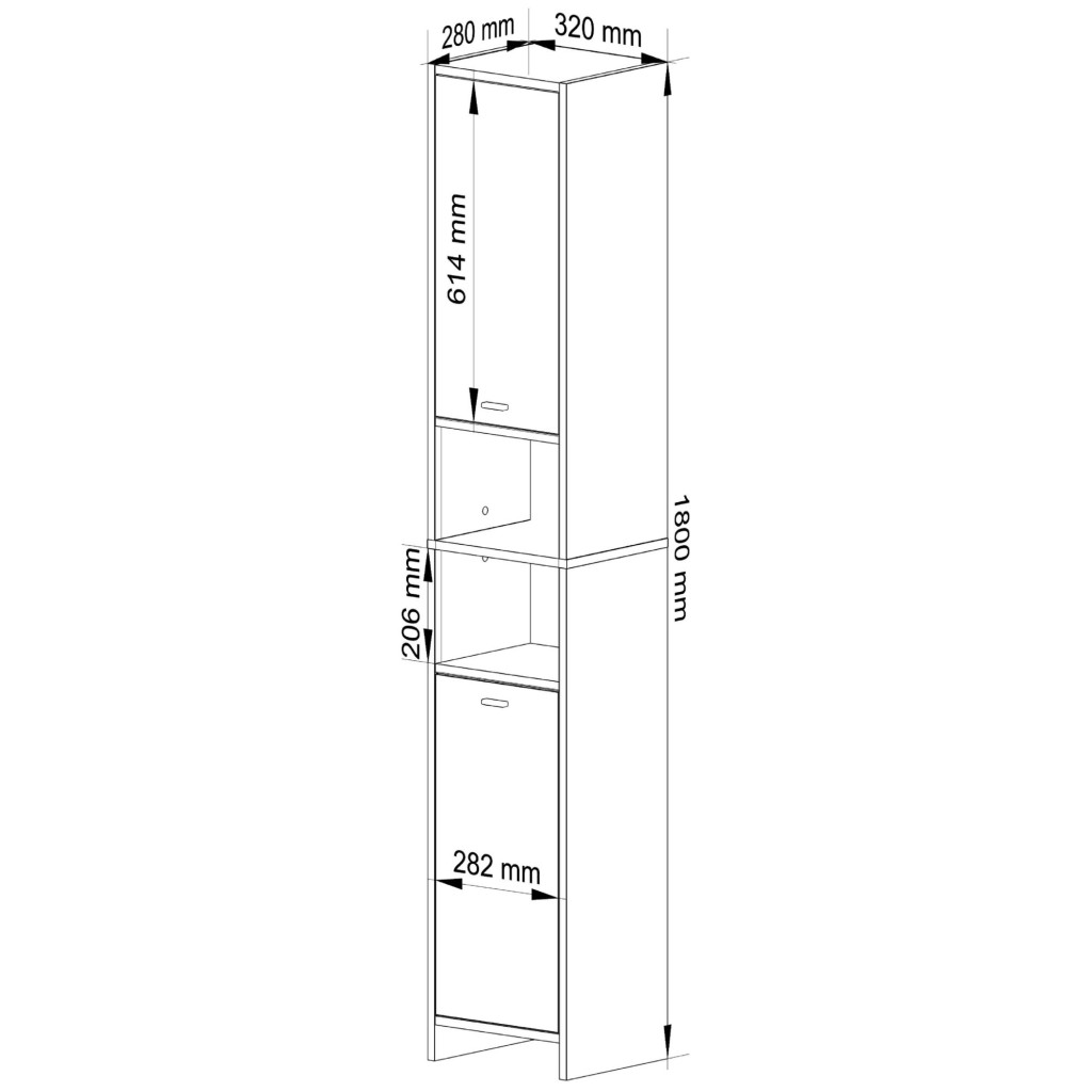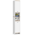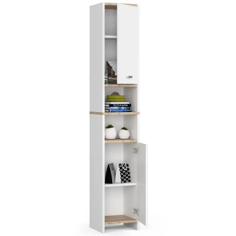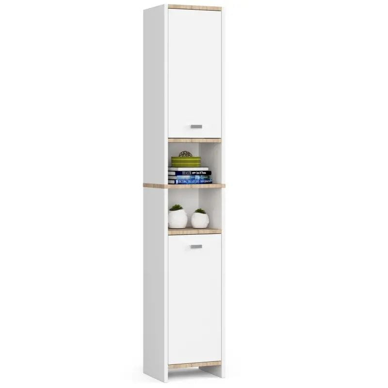 Regał łazienkowy z półkami, SARA, 32x28x180 cm, biel, dąb sonoma, mat