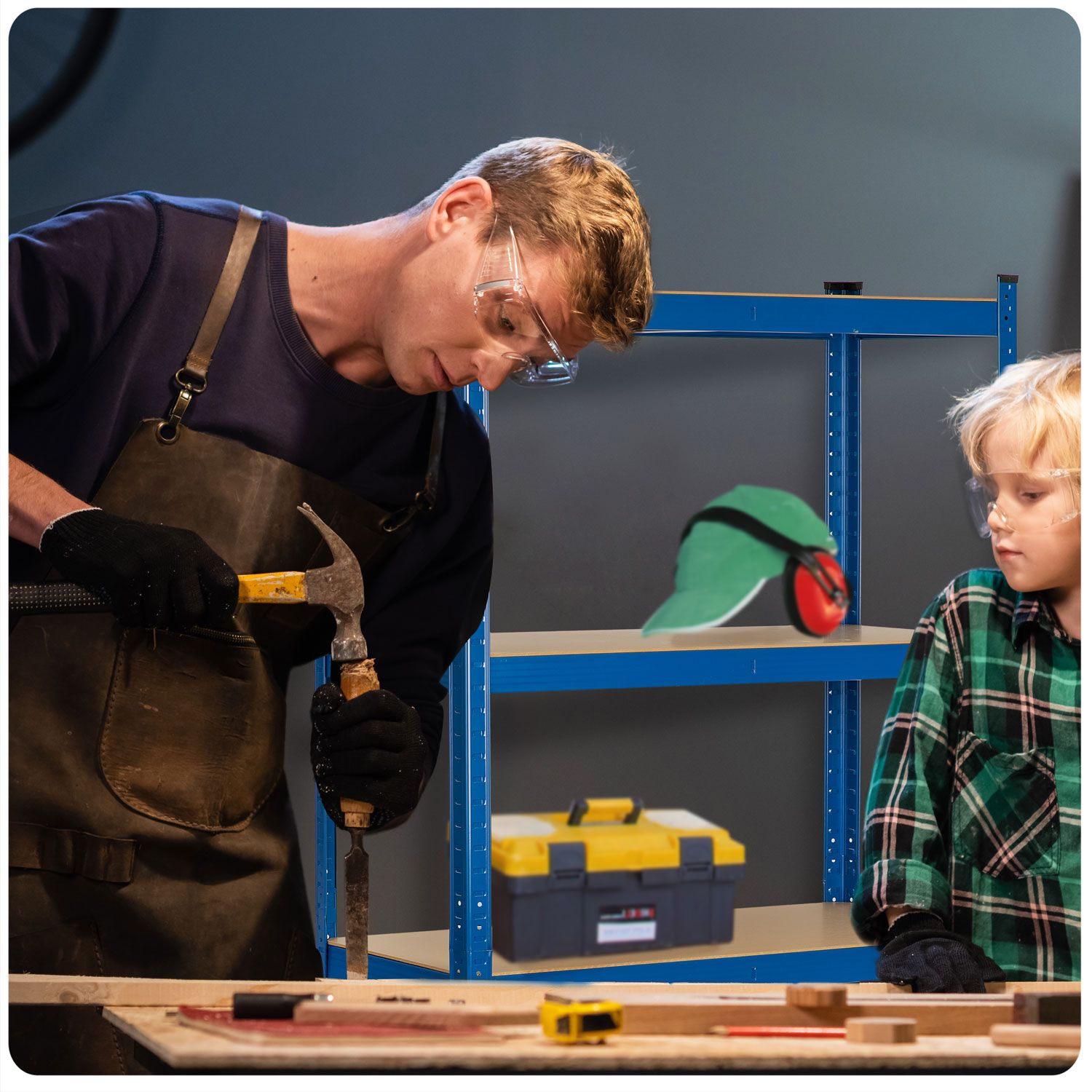 - Regał można podzielić na dwa mniejsze lub zrobić z niego stoły warsztatowe
