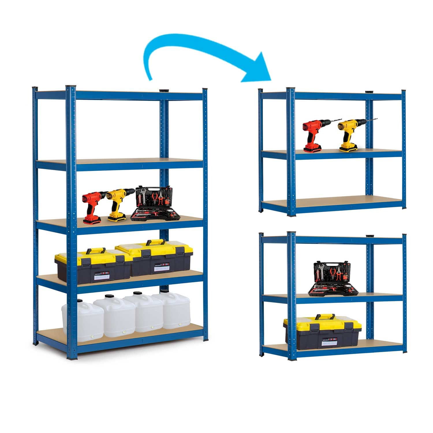 Regał składa się z 5 półek, na których możesz ułożyć produkty, kartony, czy też urządzenia maksymalnie obciążając każdą półkę aż do 125 kg. Dodatkowym atutem naszego regału jest to, że można go rozłożyć na dwa mniejsze.