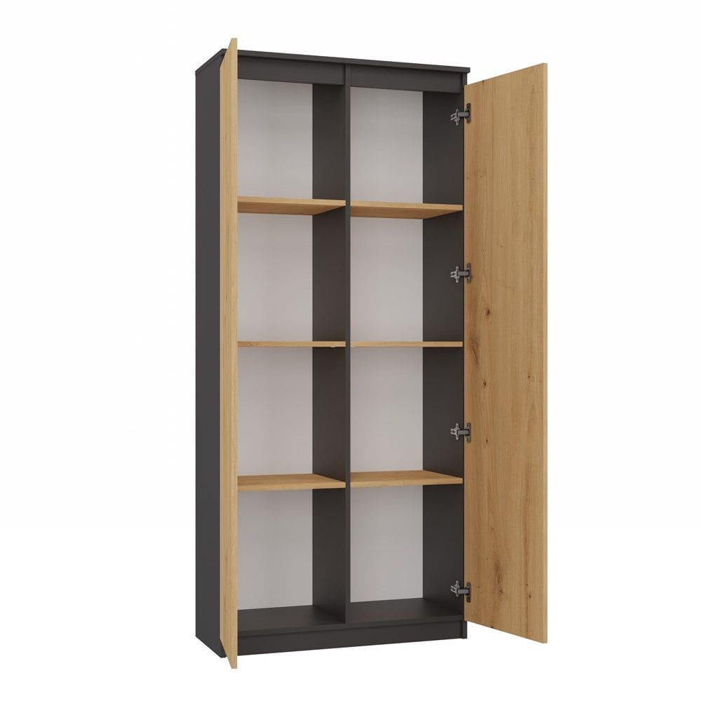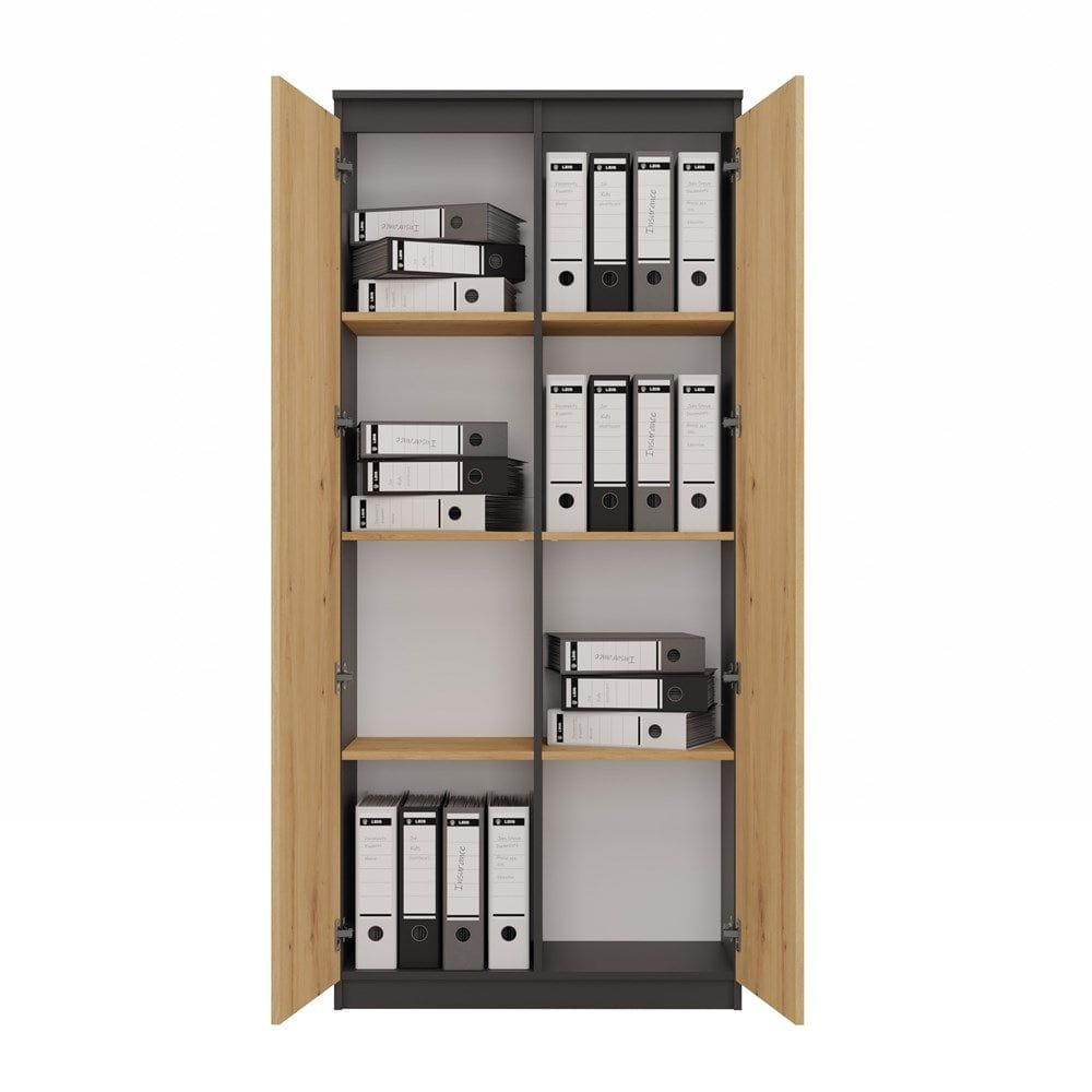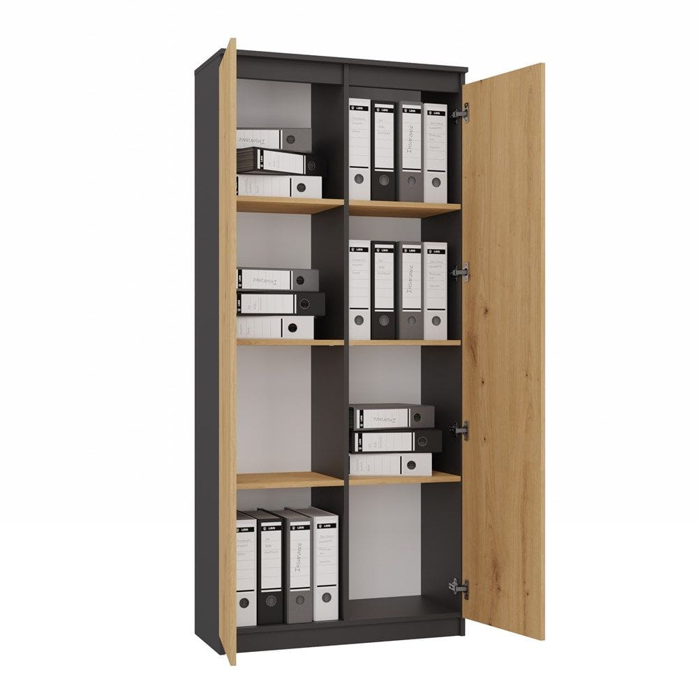 Regał zamykany, biurowy, 80x35x180 cm, antracyt, dąb artisan. Regał z ośmioma półkami to praktyczny i funkcjonalny sprzęt do wyposażenia każdej przestrzeni.