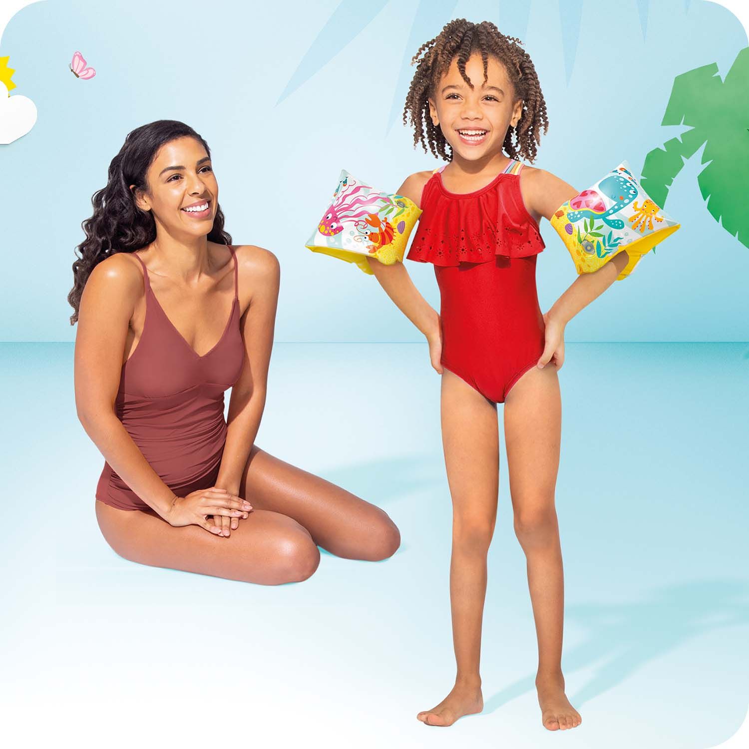- Produkt przeznaczony do używania w wodzie na głębokości, na której dziecko wyczuwa dno pod stopami i bezpośrednim nadzorem osoby dorosłej.