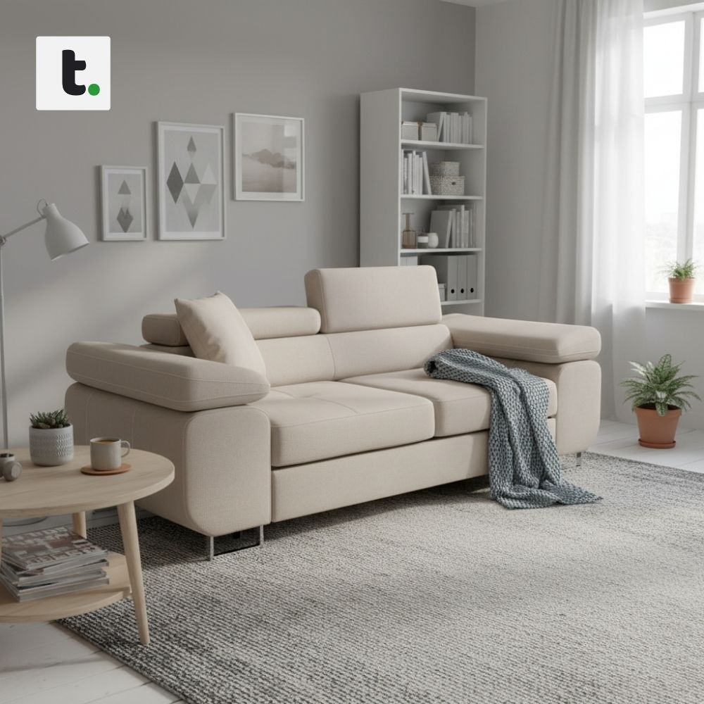 Rozkładana sofa, Bellezza, 209x100x87 cm, beżowy. Zadbaj o kącik wypoczynkowy z komfortową sofą! Funkcjonalna kanapa dwuosobowa świetnie sprawdzi się w każdym salonie lub pokoju dziennym, oszałamiając swoją estetyką. Klasyczna forma mebla połączona z funkcjonalnymi rozwiązaniami technologicznymi w postaci 5-stopniowej regulacji pochylenia i dwóch luźnych poduszek będzie idealną ozdobą i jednocześnie miejscem spotkań z rodziną i przyjaciółmi.