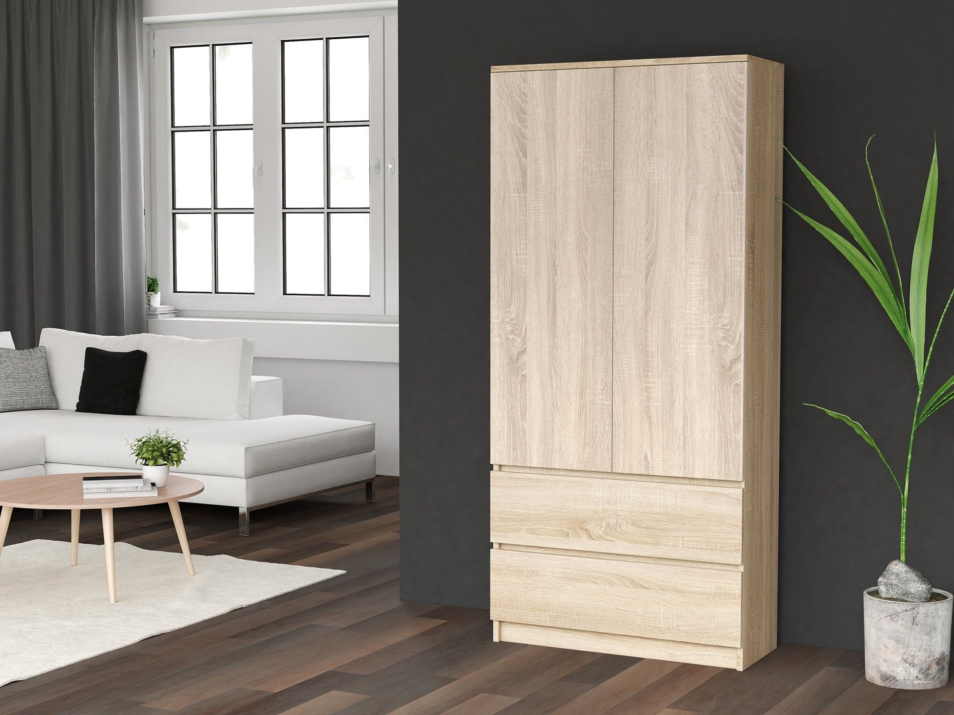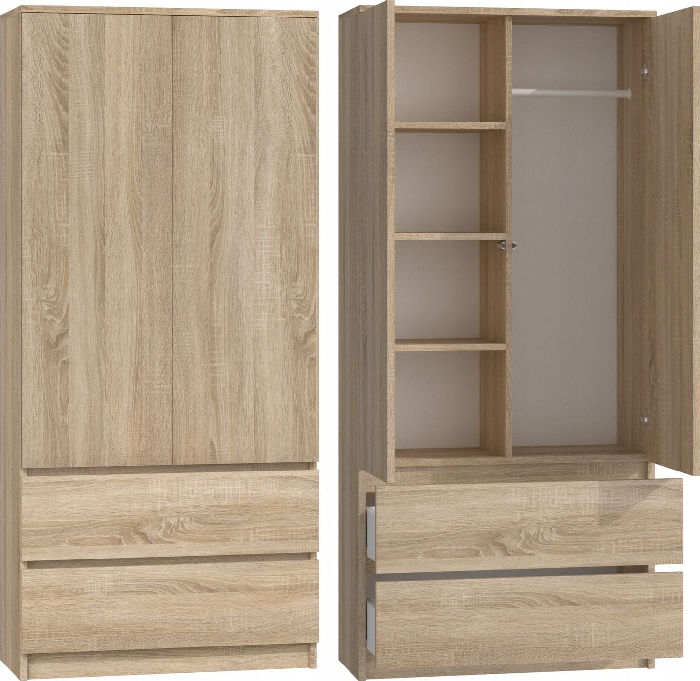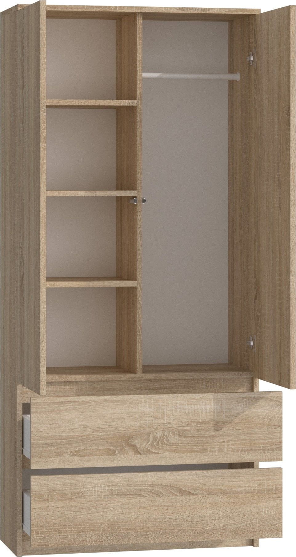 Szafa do sypialni, drzwi, 2 szuflady, 90x50x180 cm, dąb sonoma