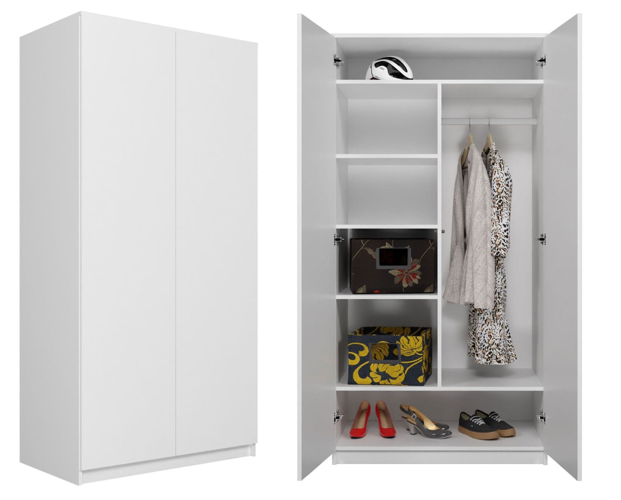 - Wnętrze szafy składa się z półek oraz miejsca na powieszenie ubrań, które pomogą przy rozmieszczaniu rzeczy Łatwiej będzie znaleźć to, czego się szuka