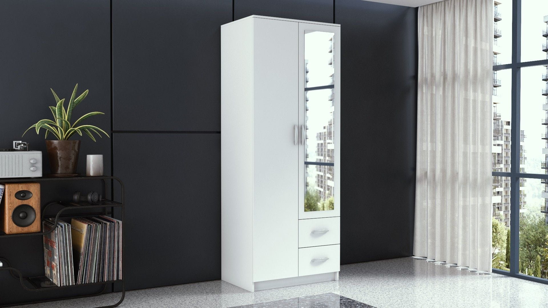 Szafa do sypialni, drzwi, szuflady, lustro, romana, 80x52x205 cm, biel, mat