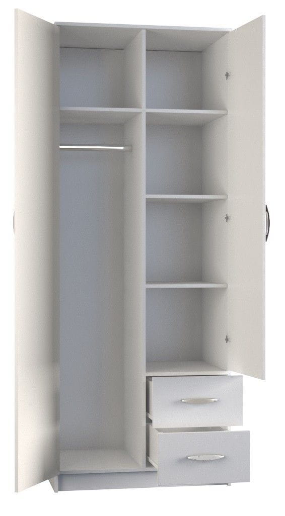 - Wnętrze szafy składa się z półek oraz miejsca na powieszenie ubrań, które pomogą przy rozmieszczaniu rzeczy Łatwiej będzie znaleźć to, czego się szuka