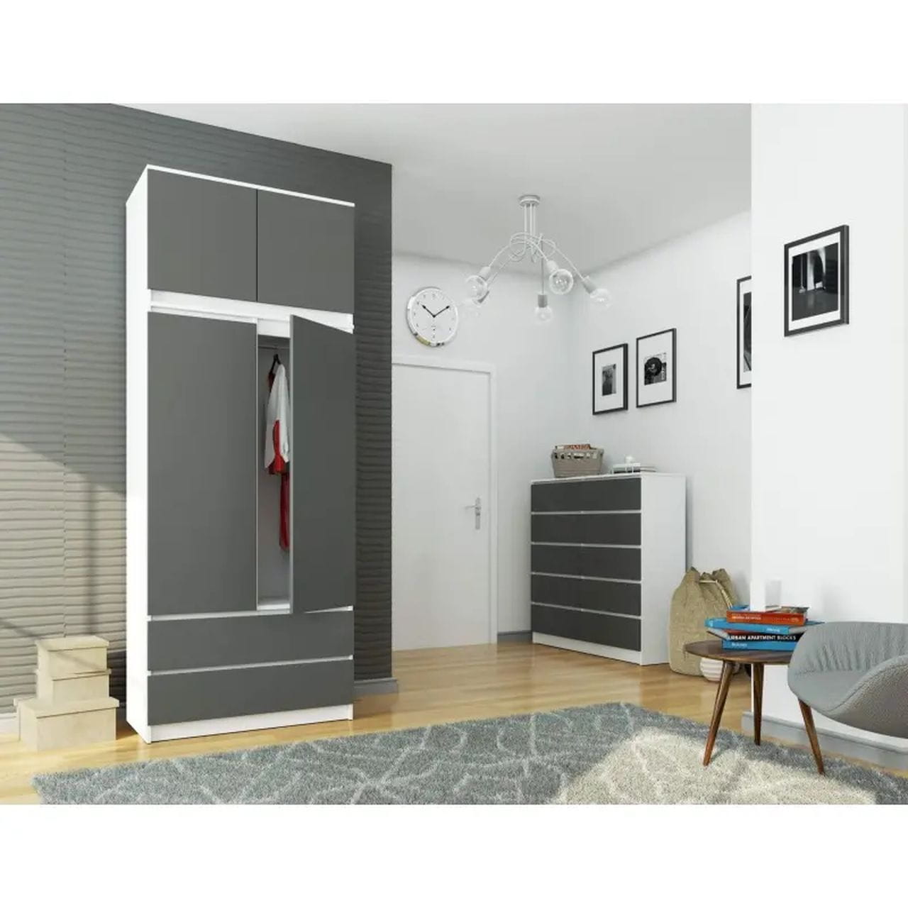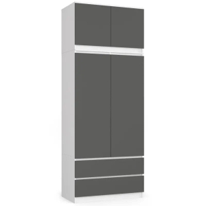 Szafa do sypialni, nadstawka, DORMI, 90x51x234 cm, biel, grafit, mat