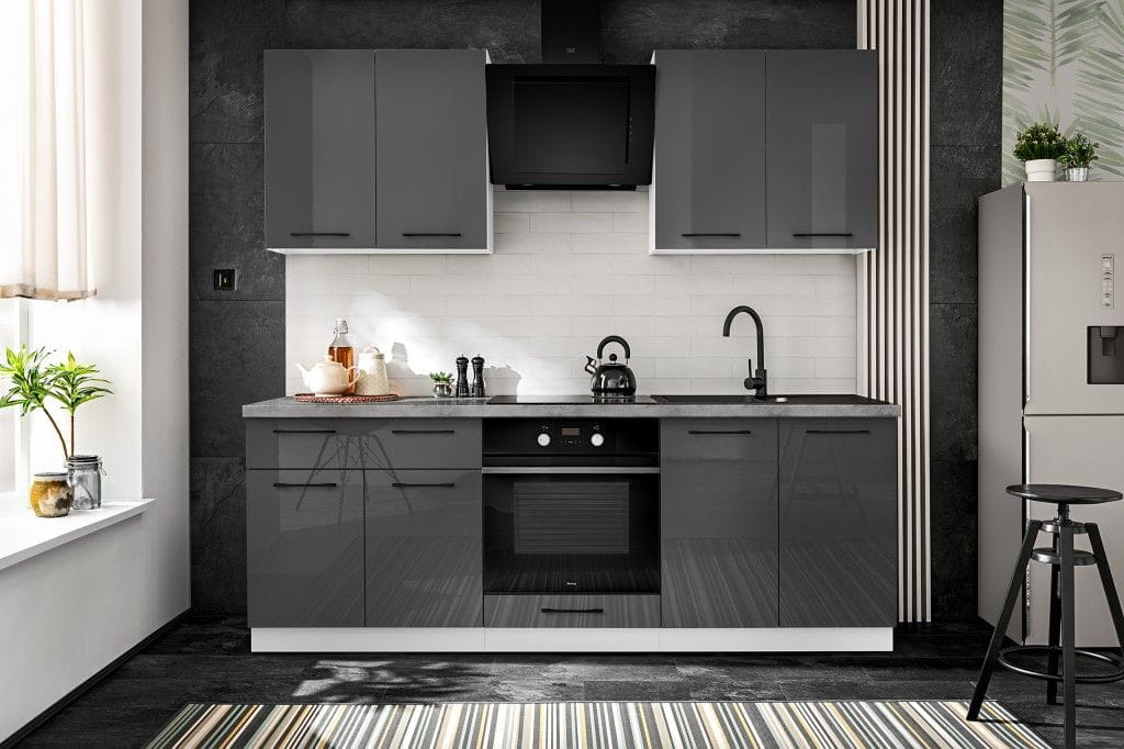 Szafka do kuchni, 4 szuflady, Frida, 40x45x81 cm, biały, grafit, połysk. Funkcjonalna szafka kuchenna, która pozwala zagospodarować nawet najmniejszą przestrzeń. W organizacji przechowywania pomogą Ci 4 szuflady, w których możesz umieścić różne elementy wyposażenia kuchni. Dedykowana szafka doskonale prezentuje się również jako uzupełnienie innych mebli kuchennych. Dobierz do niej pozostałe szafki z kolekcji FRIDA i stwórz piękną i funkcjonalną kuchnię!