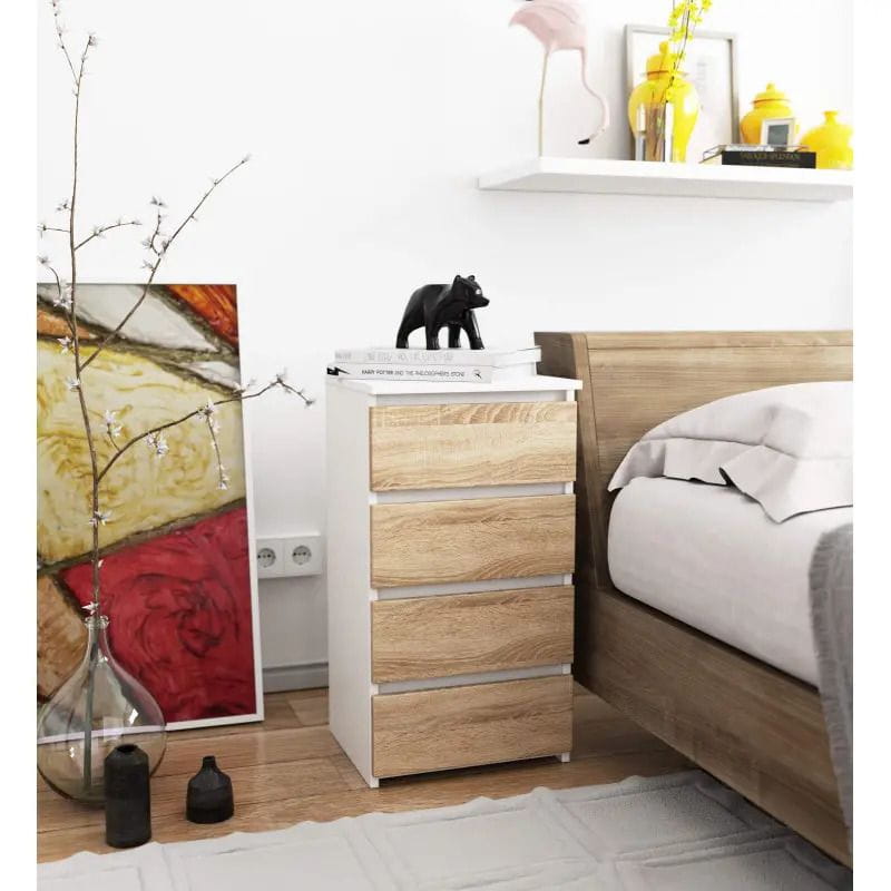 Szafka do sypialni, STILO, 4 szuflady, 40x35x74 cm, biały, dąb sonoma, mat