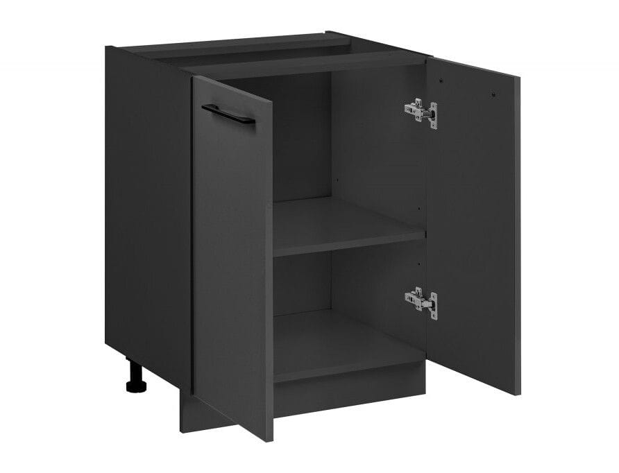 Szafka kuchenna, dwudrzwiowa, Frida, 60x45x81 cm, szary grafit, mat. Funkcjonalna szafka kuchenna, która pozwala zagospodarować nawet najmniejszą przestrzeń. W organizacji przechowywania pomogą Ci głębokie półki, w których możesz umieścić różne elementy wyposażenia kuchni. Dedykowana szafka doskonale prezentuje się również jako uzupełnienie innych mebli kuchennych. Dobierz do niej pozostałe szafki z kolekcji FRIDA i stwórz piękną i funkcjonalną kuchnię!
