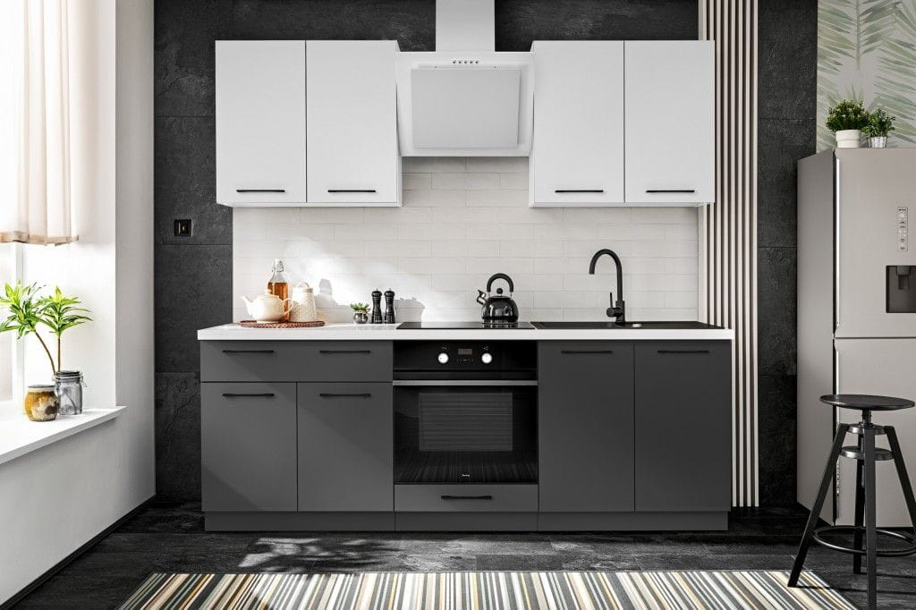 Szafka kuchenna, narożna, Frida, 90x45x81 cm, szary grafit, mat. Funkcjonalna szafka kuchenna, która pozwala zagospodarować nawet najmniejszą przestrzeń. W organizacji przechowywania pomoże Ci praktyczna półka ukryta za drzwiczkami, na której możesz ustawić garnki i różne inne elementy wyposażenia kuchni.