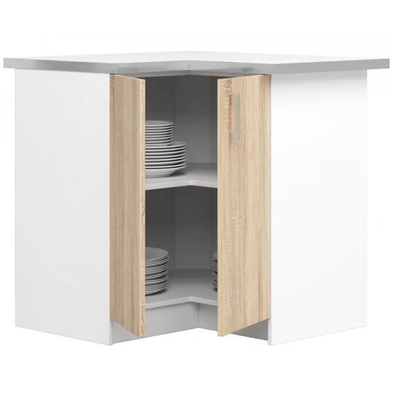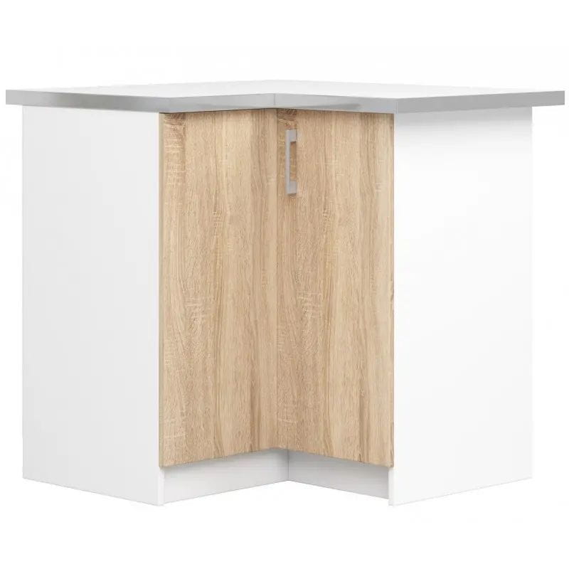 Szafka kuchenna, narożna, z blatem, SARA, 84x46x85 cm, biel, dąb sonoma, mat