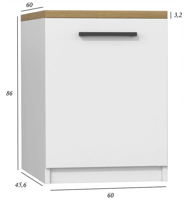 Szafka kuchenna, z blatem, 60x60x86 cm, biel, dąb artisan, mat. Prezentowana szafka kuchenna propozycja pochodząca z kolekcji SET. Dzięki niej będzie możliwe stworzenie pięknej, funkcjonalnej kuchni. Białe meble nie od dziś cieszą się ogromną popularnością, blat jest w kolorze dąb artrisan. Nic dziwnego - pięknie prezentują się w każdym pomieszczeniu, są łatwe w czyszczeniu i praktyczne.