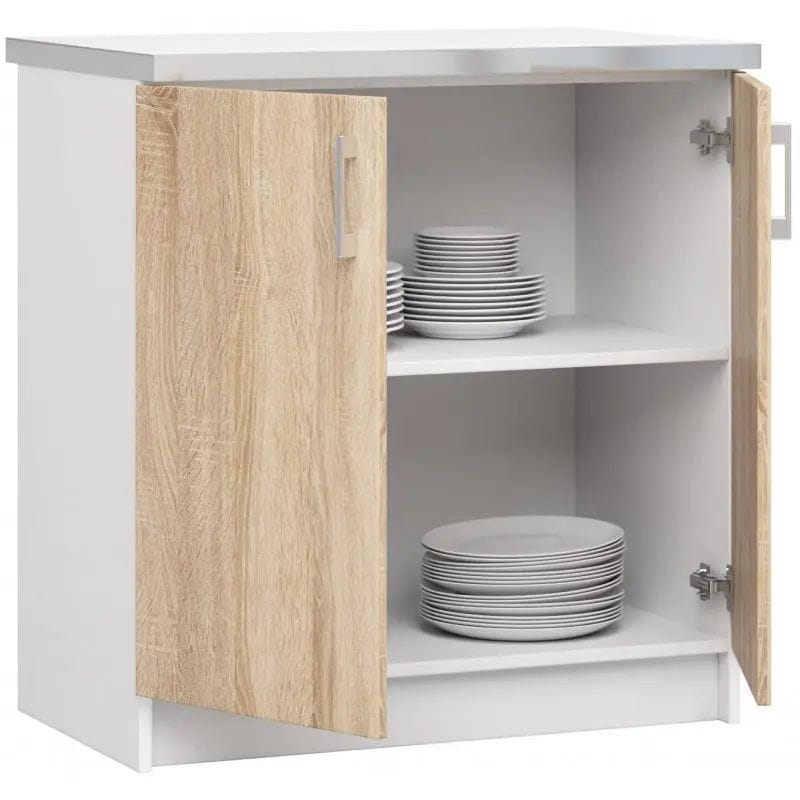 Szafka kuchenna, z blatem, SARA, 80x46x85 cm, biel, dąb sonoma, mat