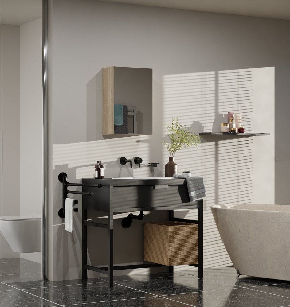 Szafka łazienkowa, wisząca, lustro, Pola, 60x22x60 cm, dąb sonoma, mat. Dzięki nowoczesnemu, a jednocześnie uniwersalnemu stylowi pozwala na dużą swobodę w aranżacji. Dedykowany mebel idealnie sprawdzi się w każdej łazience, nie zajmując przy tym zbyt wiele przestrzeni.