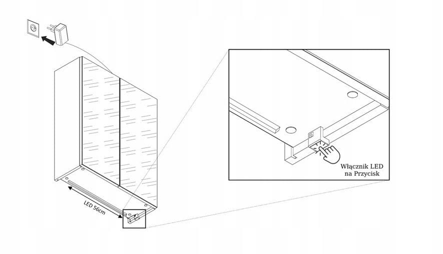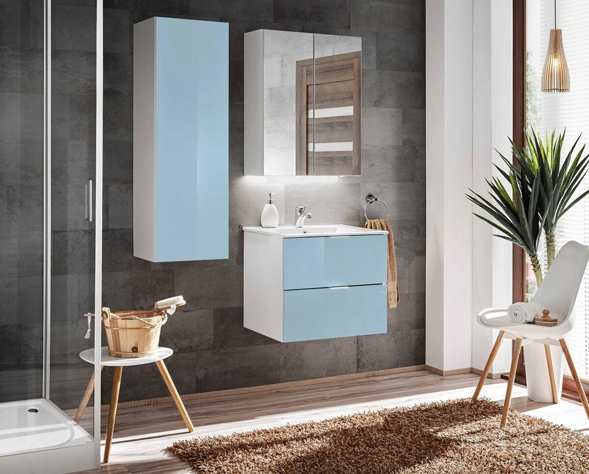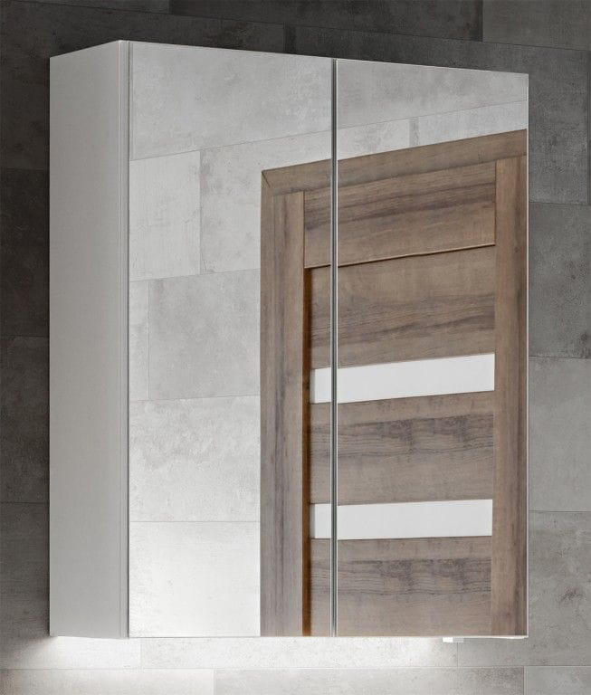 Szafka łazienkowa z oświetleniem, Sofia, 60x22x75 cm, biały, połysk. Podwieszana szafka z lustrem zaprojektowana z myślą o zapewnieniu jak największego komfortu użytkowania i zachowaniu porządku nawet w małej łazience. We wnętrzu skrywa 3 półki, które można zawiesić na 3 różnych poziomach, co gwarantuje maksymalną wygodę w dostosowaniu wysokości półek.