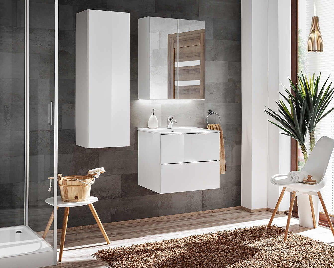 Szafka łazienkowa z oświetleniem, Sofia, 60x22x75 cm, biały, połysk