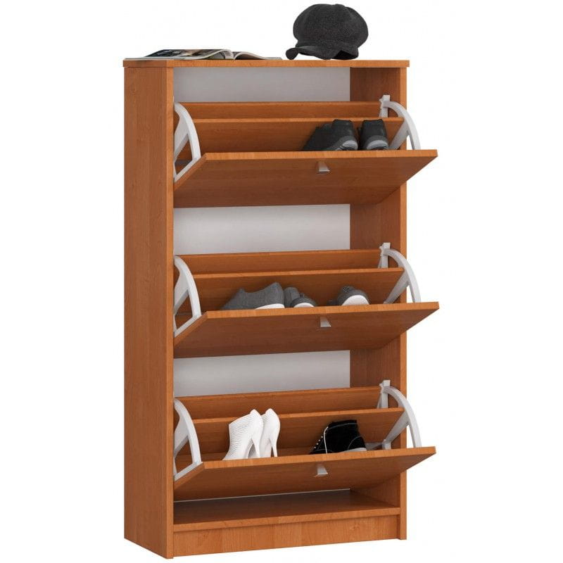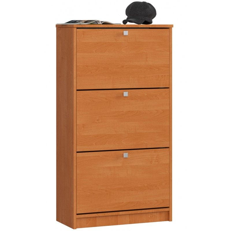 Szafka na obuwie, 3 uchylne drzwiczki, ARONA, 60 cm. Szafka na buty z uchylnymi drzwiczkami to niezastąpiony mebel do przedpokoju, w którym nie mamy zazwyczaj zbyt wiele miejsca na przechowywanie, a jednocześnie chcemy zachować w nim porządek. Przedpokój to w końcu swoista wizytówka naszego domu - miejsce, które odwiedzający nas goście widzą jako pierwsze. Warto zadbać o odpowiednie wyposażenie tej przestrzeni, aby łatwo było utrzymać w nim ład.