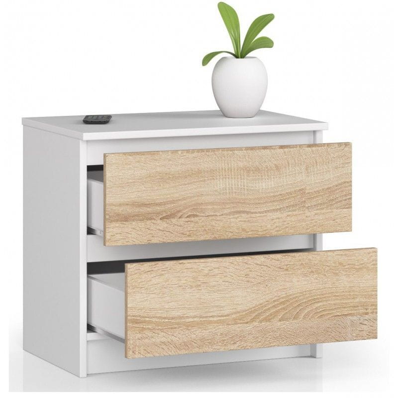 Szafka nocna, 2 szuflady, ALMA, 60x40x55 cm, biel, dąb sonoma, mat
