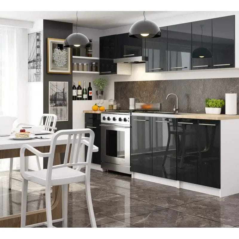 Czarne, matowe uchwyty są praktyczne i łatwe w czyszczeniu. Całość swoją kolorystyką oraz prostotą i elegancją doskonale pasuje do każdego rodzaju kuchni - bez względu na styl i sposób jej aranżacji.