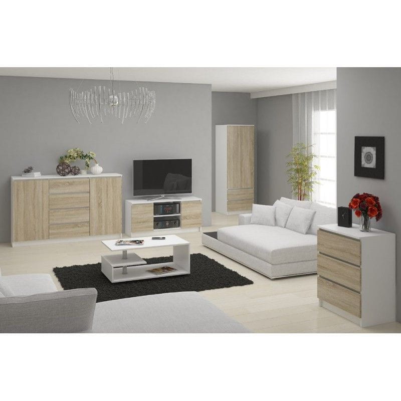 Szafka rtv, półki, NOVA, 120x40x55 cm, biel, dąb sonoma, mat