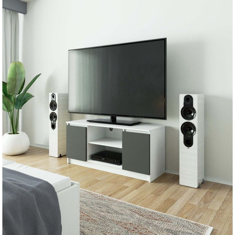 Szafka rtv, półki, NOVA, 120x40x55 cm, biel, grafit szary, mat
