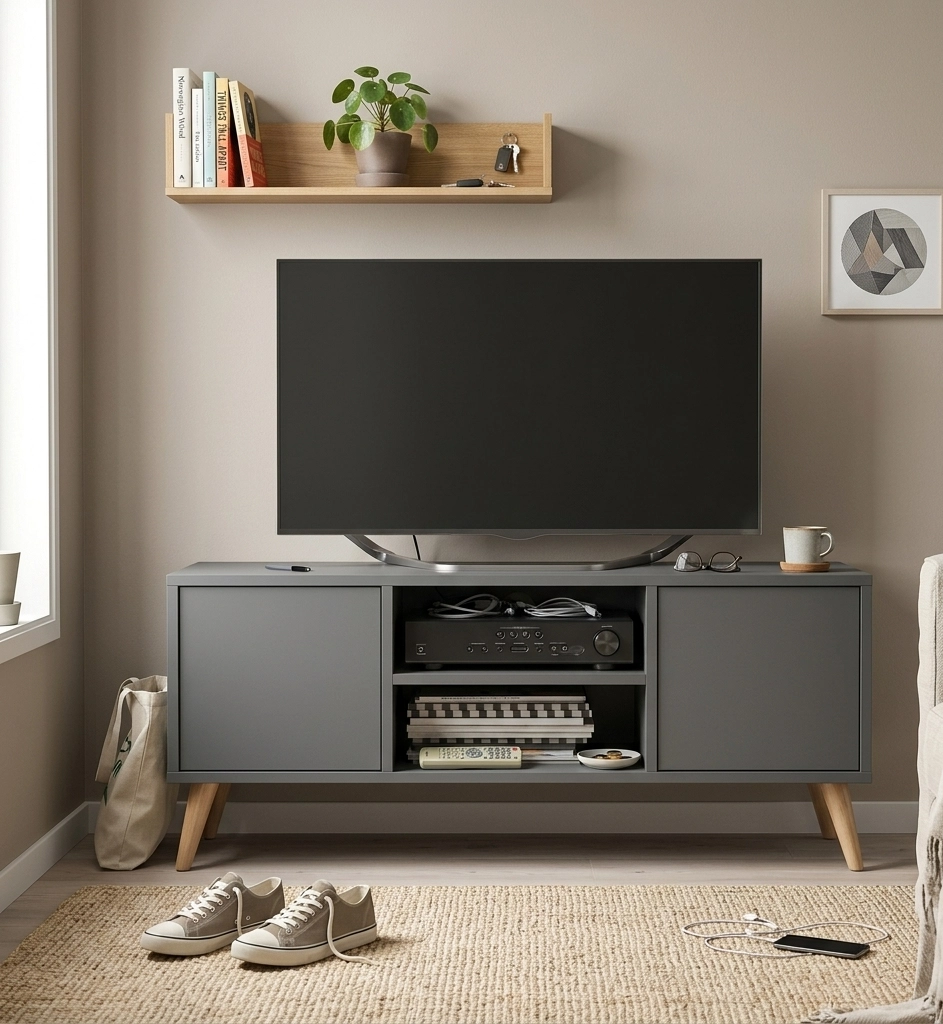 Szafka rtv, skandynawski styl, SKAND, 120x40x50 cm, grafit, mat