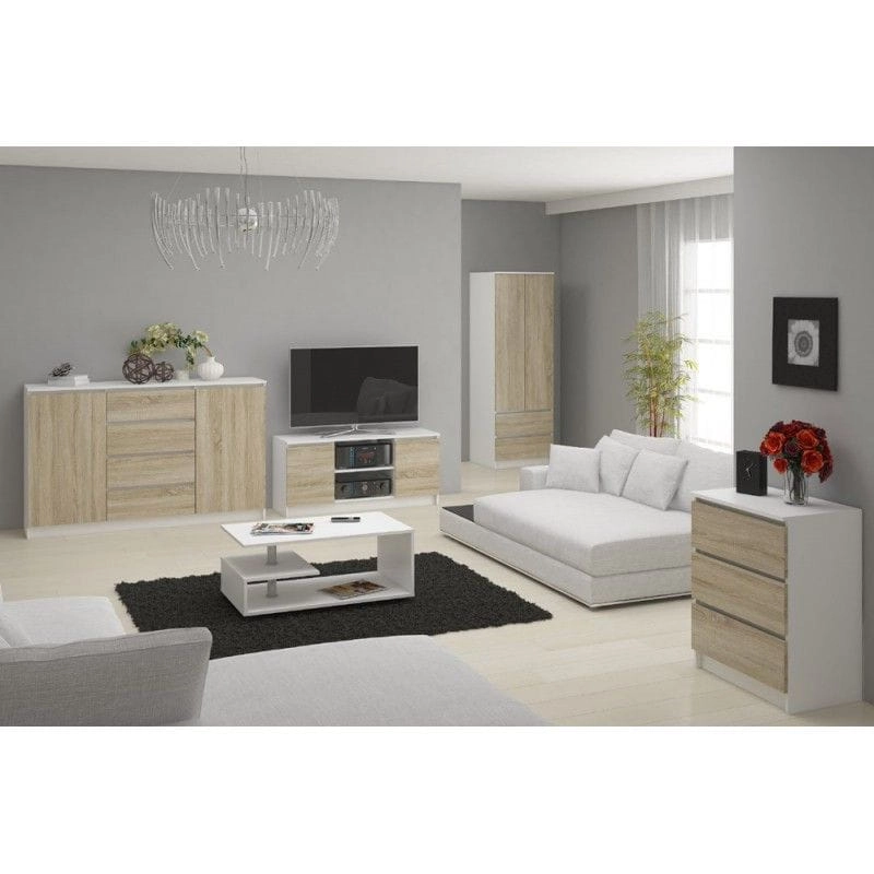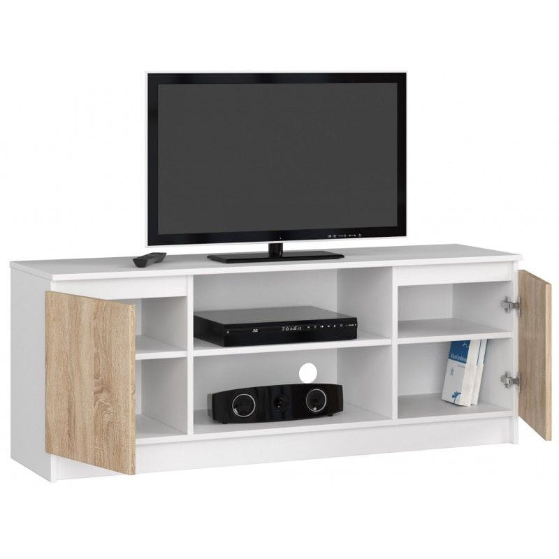 Szafka rtv, stolik, NOVA, 140x40x55 cm, biel, dąb sonoma, mat