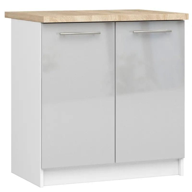 Szafka stojąca z blatem, KLARA, 80x60x85 cm, biały, metalik, połysk. Szafka do zabudowy modułowej, która idealnie sprawdzi się w niewielkich kuchniach, gdzie bardzo ważne jest dobrze przemyślane zagospodarowanie przestrzeni. Na szczególną uwagę zasługuje ponadczasowy i uniwersalny charakter mebla, który w połączeniu z innymi elementami pochodzącymi z kolekcji KLARA pozwoli stworzyć piękną, dostosowaną do indywidualnych potrzeb zabudowę.