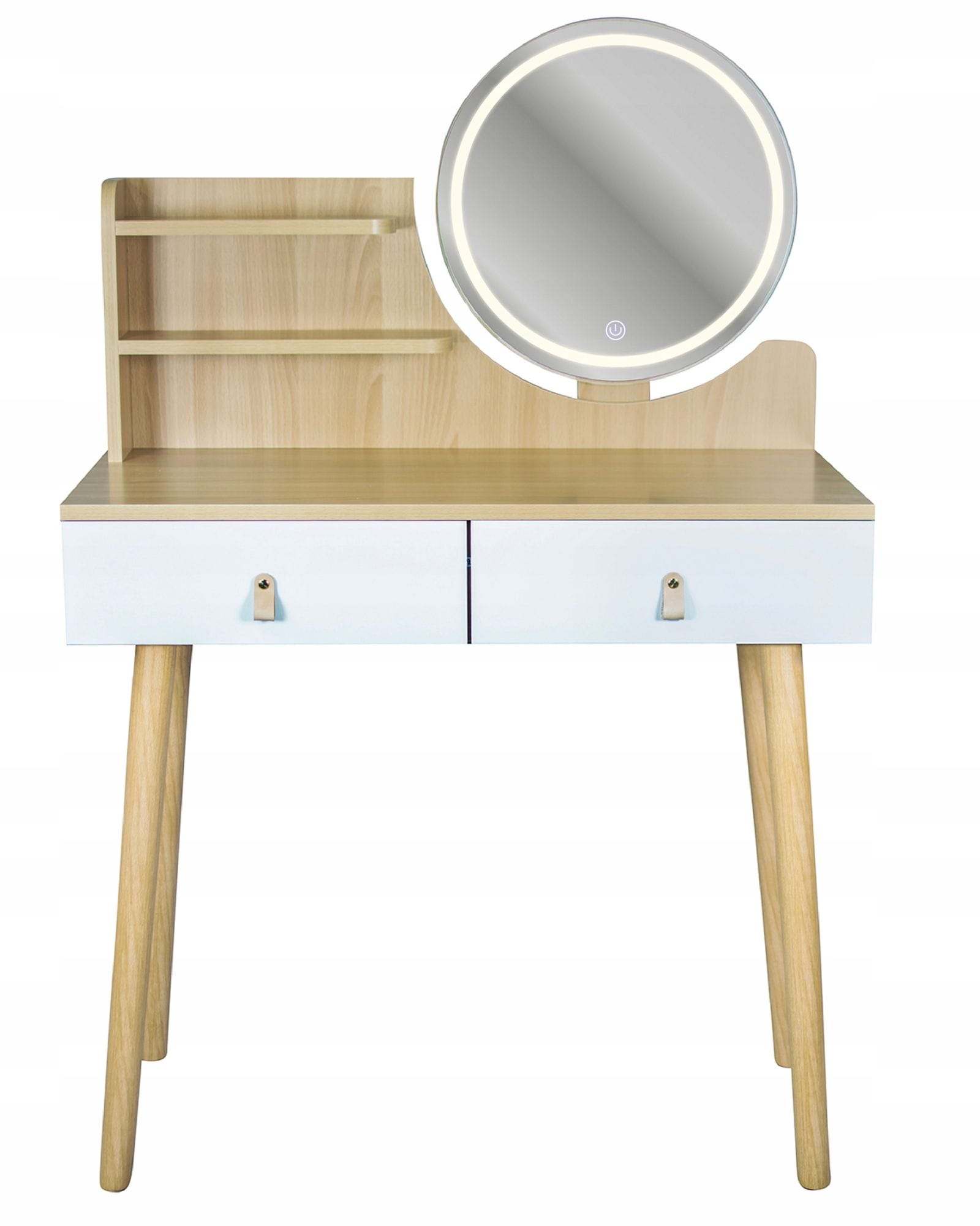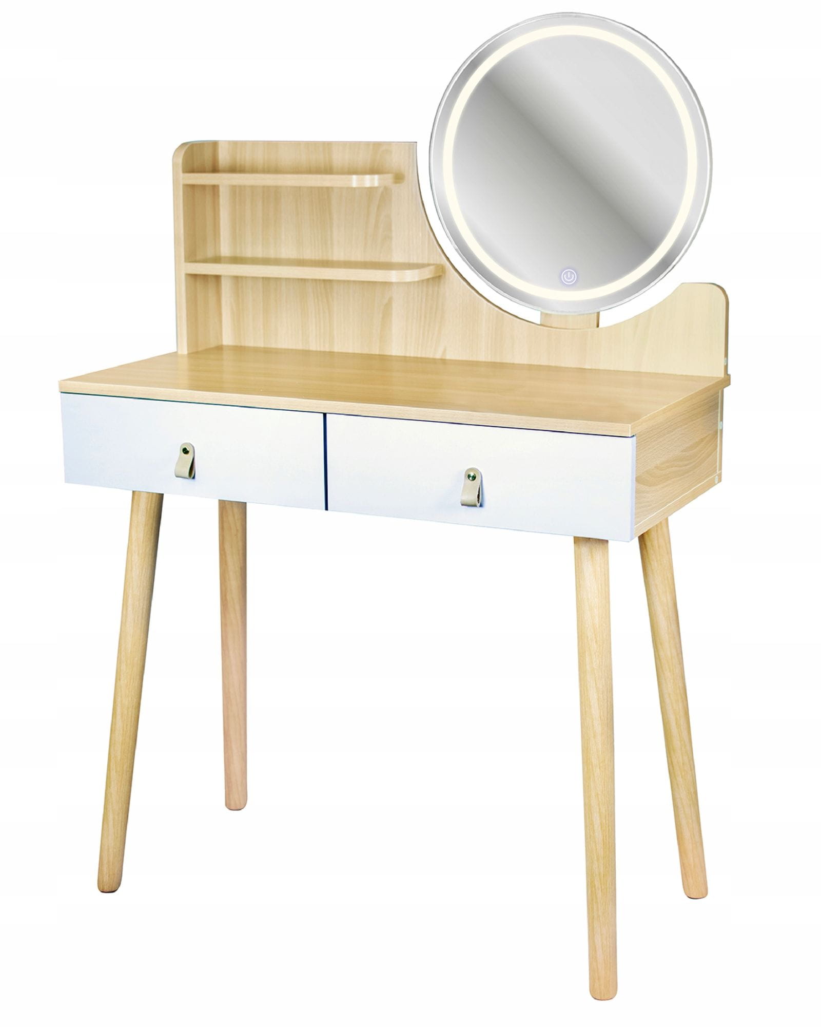 Toaletka z lustrem LED, kosmetyczna, skandynawska, 80x40x122 cm, buk jasny