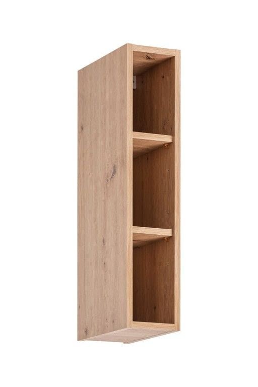 Wąska szafka kuchenna, wisząca, Ava, 15x30x72 cm, dąb artisan. Funkcjonalna szafka kuchenna, która pozwala zagospodarować nawet najmniejszą przestrzeń. W organizacji przechowywania pomoże Ci trzy otwarte półki, na których możesz ustawić różne elementy wyposażenia kuchni. Dedykowana szafka doskonale prezentuje się również jako uzupełnienie innych mebli kuchennych. Dobierz do niej pozostałe szafki z kolekcji VANESSA i stwórz piękną i funkcjonalną kuchnię!