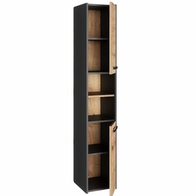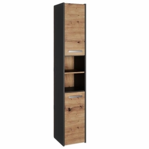 Wąska szafka łazienkowa, 30x30x170 cm, antracyt, dąb artisan