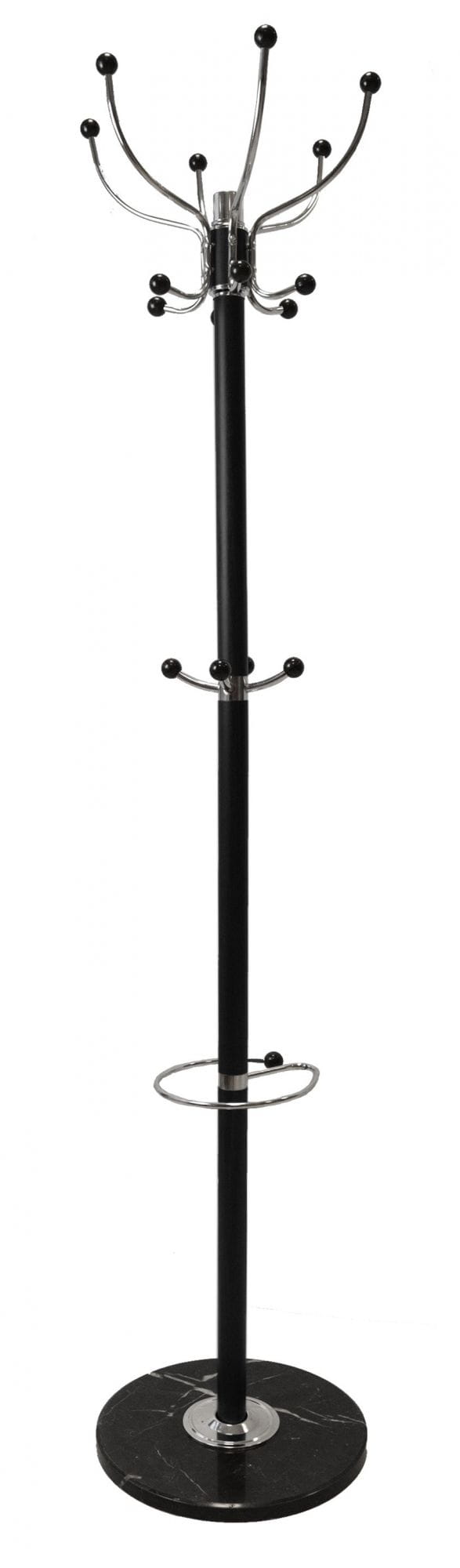 Wieszak na ubrania, obrotowy, stojący, opium, 177 cm. Wieszak jest niezbędnym elementem każdego przedpokoju. O wiele wygodniej jest zawiesić kurtkę czy płaszcz na eleganckim wieszaku, niż rzucać gdzie popadnie. Podstawa wieszaka jest marmurowa, a sam wieszak to zalaminowany metal. Z powodzeniem możesz ustawić go nawet w narożniku ścian, a dostęp do całej garderoby nie będzie ograniczony. To wszystko dzięki możliwości obracania górnej części wieszaka ( aż 12 obrotowych haczyków ).