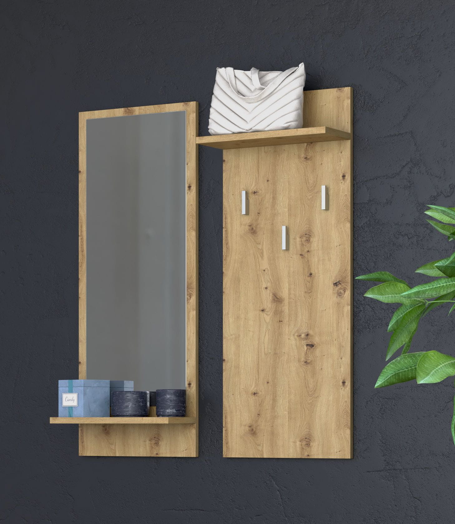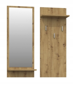 Wieszak na ubrania, półki, lustro, riva, 70x16x90 cm, dąb artisan
