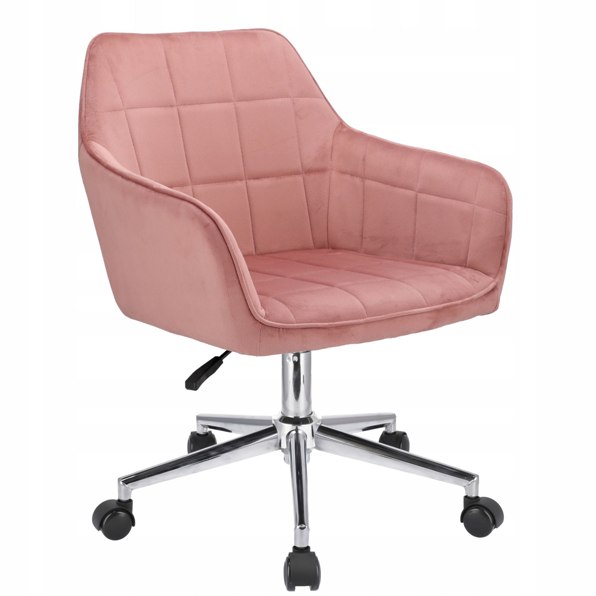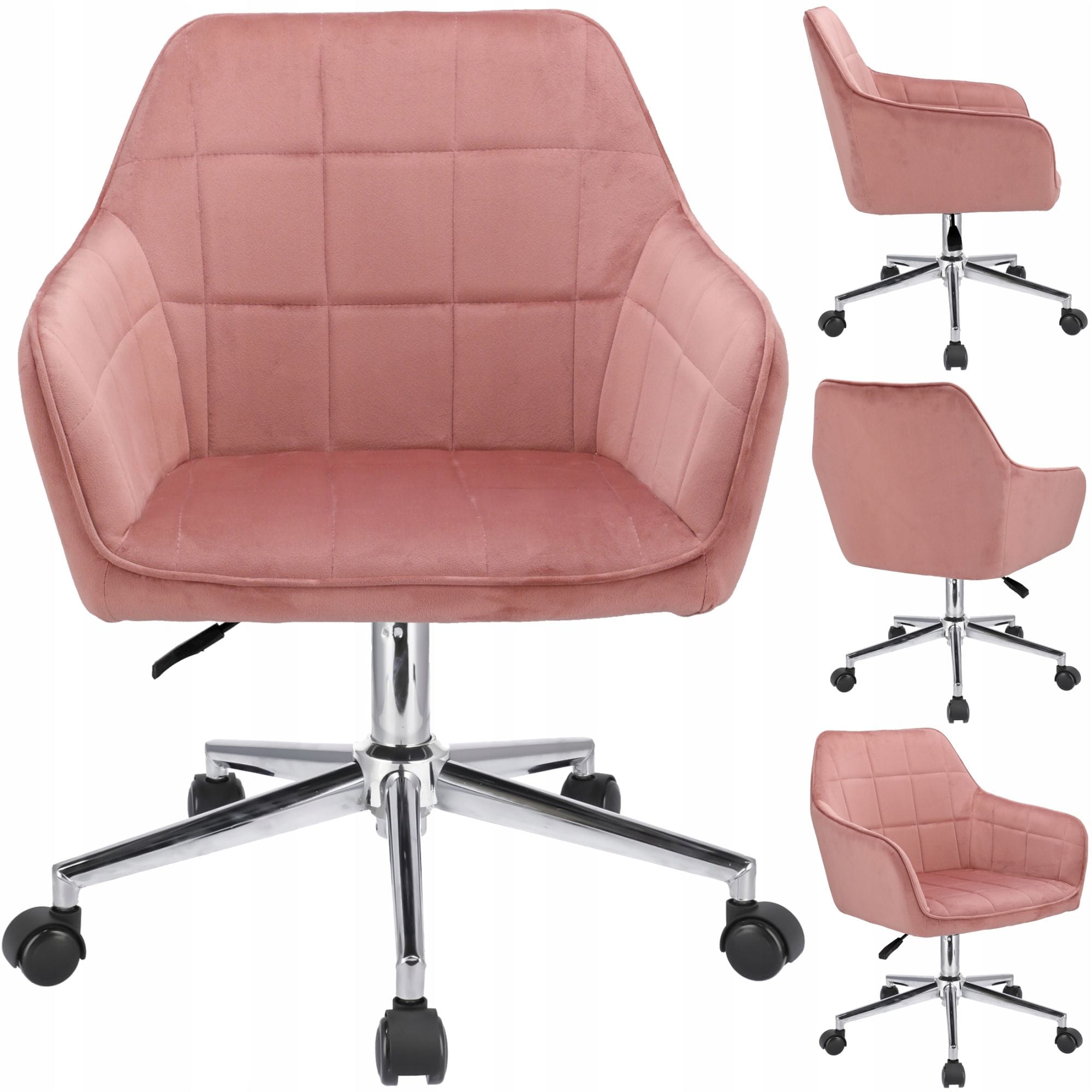 Wygodny fotel obrotowy, welur, Milano, różowy na srebrnej stopie