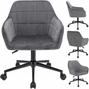 Elegancki fotel biurowy obity miękkim welurem, łączący nowoczesny design z wyjątkowym komfortem. Regulacja wysokości i 360-stopniowy obrót zapewniają wygodę podczas pracy. Solidna podstawa na pięciu kółkach gwarantuje stabilność i mobilność. Idealny do biur i domowych gabinetów, dodający przestrzeni stylu i klasy.